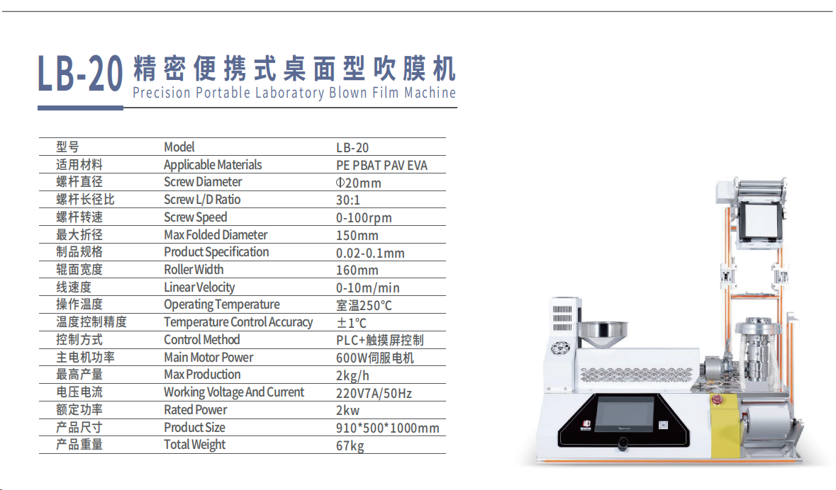 LB-20精密便携实验室吹膜机是适用于实验室的设备,集精密与便携特性于一体。